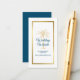 Ge dina gäster all information om bröllop på din webbplats med det här elegant-kortet som innehåller ett modernt skript, en havsblå text, inklusive en konstnärlig gyllene handflatan träd och metallisk guld ram på kortets framsida. En koordinerande havsblå bakgrund är på baksidan.