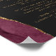 An elegant sign for your wedding bar menu. The words "bar menu" appears in gold-colored handwriting calligraphy with swashes at the beginning and end, with customizable text below. A burgundy red watercolor agate design trimmed with gold faux glitter decorates the left border on a slate black background. See our collection for matching wedding invitation suite and day-of stationery.