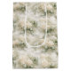 A seamless pattern of delicate ivory hydrangea flowers, beautifully intertwined with sprigs of baby's breath and graceful sage green satin ribbon, accented by elegant bows