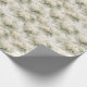 A seamless pattern of delicate ivory hydrangea flowers, beautifully intertwined with sprigs of baby's breath and graceful sage green satin ribbon, accented by elegant bows