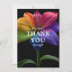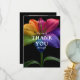 "Gratitude in Bloom: Photo Flat Card" — a wedding thank-you card from the Technicolor Love collection, designed to pair heartfelt words with a cherished image. The front features the radiant rainbow lily in full multicolored bloom against a bold black backdrop, with a warm message like “Thank you for sharing in the love, laughter, and special moments.” Names and wedding date can be added in elegant script or modern type.