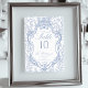Wedding Crest Blue Floral Elegant Script Bordsnummer
