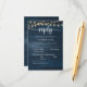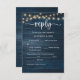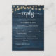 This is the beautiful Modern, Calligraphy, Elegant RSVP (Respond) Enclosure Card, in Navy Blue rustic wood, with string lights, where you can edit, change colour and format it as per your design requirement, with meal options, reserved seats, number attending and song request option.