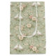 Two pairs of doves are elegantly arranged with soft roses and sage green ribbons, enhancing the vintage ambiance in a chinoiserie design.