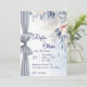 Timeless save the date wedding card with soft watercolour florals in dusty blue and blush tones .
