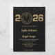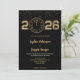 A wedding invitation with a black background and gold text is shown. The year "2026" and a clock design appear at the top, adding elegance.