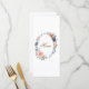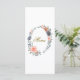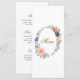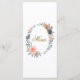 Elevate your reception tables with this beautifully designed wedding menu card, featuring a delicate botanical wreath of soft peach florals, muted blue blooms, and graceful greenery. The refined oval arrangement frames your menu details with a light, romantic touch, while elegant script headings add a sense of timeless sophistication.
