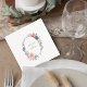 Complete your reception details with this elegant wedding cocktail napkin, adorned with a delicate wreath of soft peach florals, muted blue blooms, and airy greenery. The refined oval design frames your names in timeless style, creating a cohesive and sophisticated accent for your celebration.