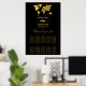 A black and gold destination wedding passport design with gold world map, airplane and travel elements. This design is ideal for all Spring, Summer, Fall and Winter destination weddings. An elegant black and gold wedding travel design with passport layout, world map and custom couple photo. A modern destination wedding seating chart design with elegant elements. Matching wedding invitations and other stationery items are also available.