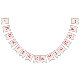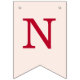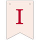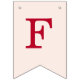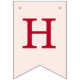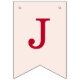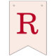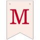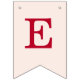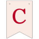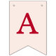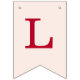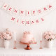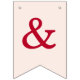 A simple bunting flags banner for a pink and red wedding, with the names of the bride and groom, with red caps on blush pink background.