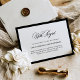 These elegant, old money style wedding postponement or cancelation announcement cards feature a dramatic black border and a black and white text design. The formal script says "with regret," and there is enough room to provide a brief message of explanation to your guests. There is a mix of classic black text and modern calligraphy for a classy and minimalist design.