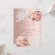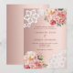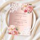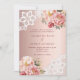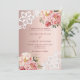 For an elegant and romantic wedding. A rose gold gradient background decorated with pink and rose gold florals, roses and lace. Personalize and add your names and details.