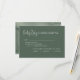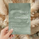 Wedding invitations with a seating chart, designed in a minimalist style. Elegant green tones, combined with minimalist design and personal touches, create a sophisticated yet formal atmosphere.