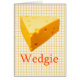 Gul plädbakgrund med ett kvarter av ost som märks Wedgie