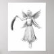 Svart och vit illustration av vitling Willow Fairy holding catkin