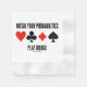 Bridge players who like to weigh the odds of each card played will enjoy this bridge saying paper napkin featuring the four card suits along with the saying "Weigh Your Probabilities Play Bridge". Make others do a double-take with a dose of sound bridge advice humor at your next bridge-themed event with this paper napkin!