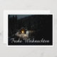 Die Karte zeigt eine stimmungsvolle, winterliche Szenerie mit einer kleinen, beleuchten Holzhütte inulleines verschneiten Waldes. Die warme Lichtquelle im Inneren schafft einen schönen Kontrast zur dunklen, friedlichen Umgebung. Der elegante "God jul"-Schriftzug in Weiß verleiht dem Motiv eine festliche Note. 🎄 ✨ Deutsch