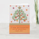 Weihnachtskarte Bunter Tannenbaum mit Schnörkeln, Kugeln und Sternen.