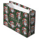 Sticker mit dem Kopf des Weihnachtsmanns und einem wunderschönen Weihnachtskranz. Digital erstellt, in farbenfrohem Cartoon-Stil.