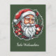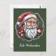 Sticker mit dem Kopf des Weihnachtsmanns und einem wunderschönen Weihnachtskranz. Digital erstellt, in farbenfrohem Cartoon-Stil.