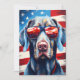 En färgstark Independence day-design med en Weimaraner med solglasögon