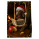 Individually designed Christmas gift bag featuring a Weimaraner reading a book entitled 'Cheese Tax at Home Regulations 2025'.