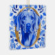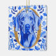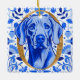 Weimaraner colourized in blue hues with a gold leaf letter "O" and a Blue and White decorative floral pattern background. This is a custom design for the Ontario Weimaraner Rescue and Assistance (OWRAssist). A percentage of the proceeds goes toward helping rescued Weimaraners.