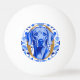 Weimaraner peering thru the letter "O" in Gold Pingisboll