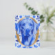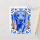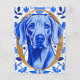 Weimaraner colourized in blue hues with a gold leaf letter "O" and a Blue and White decorative floral pattern background. This is a custom design for the Ontario Weimaraner Rescue and Assistance (OWRAssist). A percentage of the proceeds goes toward helping rescued Weimaraners.