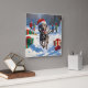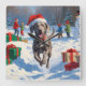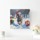 Weimaraner springer i snö med julhatt fyrkantig klocka