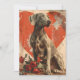 Fånga nostalgians väsen med det här vykortet för vintage med en elegant Weimaraner omgiven av ömtåligt ro och ömtåliga hjärtan. Den sepiatonerade bilden framhäver tidlös värme och frammanar en känsla av kärlek och komplementaritet. Weimaraners eleganta och värdiga beteende kompletteras på ett utmärkt sätt av bakgrunden för mjuk blommigt och skapar det som en hjärtefråga för hundälskare och vintagens entusiaster.