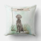 Add cozy charm to your home with this Weimaraner throw pillow featuring a watercolor design and customizable name flag. Ideal for breed lovers.