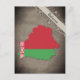 Postkarte mit einem Umriss von Weißrussland, gefärbt in den Farben der Nationalflaggge.