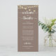 Make a heartfelt first impression at your modern wedding reception with this sophisticated "Welcome & Thanks" place card - designed to rest beautifully on each guest’s plate, in rustic string lights, dark taupe brown theme. Featuring graceful script typography and a timeless layout, this elegant card warmly greets your loved ones while expressing gratitude for sharing your special day. Ideal as a dual-purpose place card & welcome note—combine sentiment and function without cluttering your tables-cape. Designed for couples who value refined details, this card complements modern and luxe wedding themes. Print on premium card stock for a luxurious finish that guests will cherish (or even keep as a sweet keepsake!). Because love is best served with gratitude.
