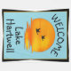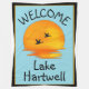 Welcome everyone to the lake with this custom lake design featuring a beautiful sunset on a teal blue background. Great lake house gift. Add the name of your favorite lake.