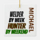 Denna unika prydnadsartikel med citatet "Welder by Day Hunter by Helg" är perfekt för vilken svetsare som helst som kärlek jagar.