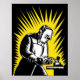 Poster Illustration av en svetsning av svetsarbetare i metall med svetsfack och visare som utförs i återträsket stil.