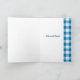 Ett farföräldrars dagskort med "Lycklig-morföräldrardagen" på walesiska med ett Faux-lappverk av Daffodil mönster som har hamnat med Blue and White Check Gingham.