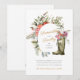 Denna bröllopsinbjudan har söta akvarell-Wellingtonstövlar och blomsterdetaljer – perfekt för det utomhus- eller lantälskande paret!