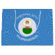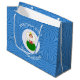 Large gift bag features our angel wearing the flag of Wales for holiday gift decorating or Hanukkah decor. The Welsh Flag angel is found inside a white circular fractal of squiggly squares. The background is a blue fractal of squiggly squares. Add your own text or personalize with a name and the year.