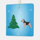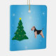 En välbetänkt walesisk skräckare står bredvid en Julgran.