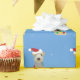 En walesisk faser är skrapad i julen i ljus, försedd med en julhatt, och har ett gren som sticker ut sin mun i denna ljusblå julomslag papprare.