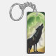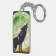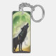 Stor svart varg och ljust fullt måne med varulvskugga.
