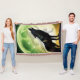 Stor svart varg och ljust fullt måne med varulvskugga.