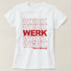 Trendiget och den lustiga parodi på den klassiska "tack, ha en trevlig dag"-matkassen har en söt återtypografi med "WERK" i fet röd skrift som upprepas fem gånger och "ha en trevlig dag" under.