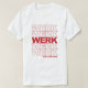 Trendiget och den lustiga parodi på den klassiska "tack, ha en trevlig dag"-matkassen har en retrotyopgrafi med "WERK" i fet röd typografi som upprepas fem gånger och "ha en trevlig dag" under.