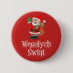 Wesolych Swiat Polska jultomten Red Button. Säg "God jul" på polska med den här söta, tecknad jultomten. Underbar för all polsk jul party. Perfekten till din polska julfest. Underbar till kontoret eller i skolan.