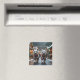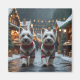 Denna festliga design fångar den glada känslan av högtidssäsongen, med en bedårande hund.Som ligger i en vintersaga, komplett med ett dekorerat julgran, och vackert inslagna presenter. Snöflingor faller försiktigt, vilket ger en magisk touch till scenen, medan de levande färgerna på högtidsdekorationerna skapar en varm och glad atmosfär.