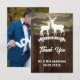 Jag vill uttrycka min tacksamhet till vår Western. Hunt är över Bröllop-fototackkort! Perfekt för rustiskt och land-temat bröllop, detta vackert designade kort har en hjort silhuett och klassiska westerna motiv. Anpassa den med ditt favoritfoto från bröllop för att skapa ett hjärtligt och minnesvärt tecken på uppskattning för dina gäster. De här tackkorten är tryckta på en högkvalitativ kartong och ger en snyggt och elegant för att framföra ditt tack. Beställ nu att du ska få en personlig till din post-bröllop-korrespondens och visa din uppskattning på ett meningsfullt och snyggt sätt med de här unika fototackkorten!