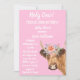 Heliga Cow! Cute-brun ko-illustration, flicka-duschinbjudan. Baby Shower. Rustic, komjölksfärgning av Monika Howarth. Natur, Western, gård, djur i land, illustration av inbjudan till babydusch. Blommigtens utformning. Anpassa den med dina detaljer.